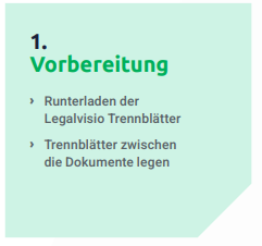 Hierbei gibt es etwa bei Legalvisio die Möglichkeit, besondere Trennblätter beim Einscannen zu verwenden, sodass automatisch bestimmte Seiten zu einem PDF zusammengefügt und nach Belieben sogar direkt an einem bestimmten Ort in der E-Akte gespeichert werden. So spart man sich das lästige Bearbeiten und Zusammenfügen von PDFs schon direkt beim Einscan-Vorgang!