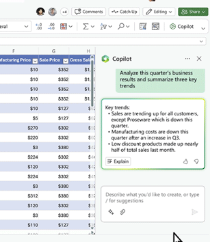 Doch nun ist dies alles kein Hexenwerk mehr. Ja, sogar ein Excel-Neuling kann nun die kompliziertesten Rechnungen anstellen, denn: Er kann sie ganz einfach in seiner normalen Alltagssprache formulieren. Die Beispiele von Microsoft geben uns allen Hoffnung für den Umgang mit Excel. Einfach der Copilot-KI sagen „