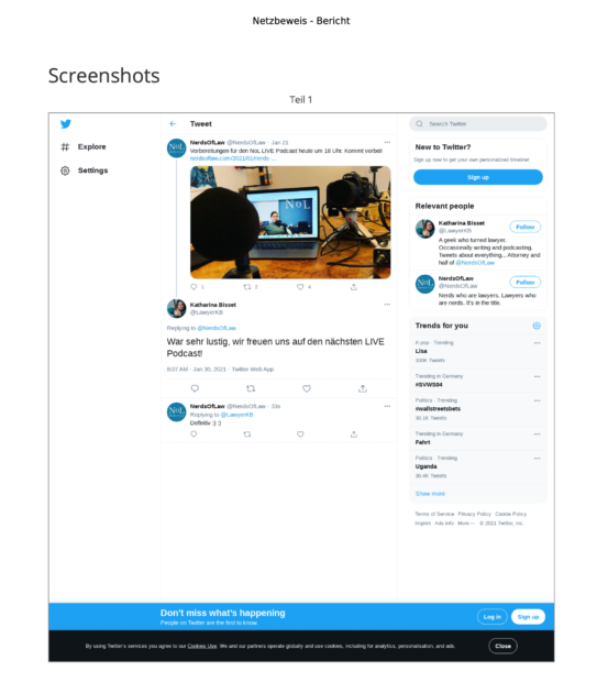 Sollte es bei einer Straftat im Internet tatsächlich zur Anklage und zu einem Gerichtsverfahren kommen, sind vor Gericht Screenshots oft nicht ausreichend. Der Grund dafür ist, dass sie relativ leicht manipuliert werden können. Der Bericht hingegen ist mit einem Zeitstempel versehen und wird elektronisch signiert. Das erschwert die Manipulation und erhöht damit die Chancen auf eine Verurteilung.